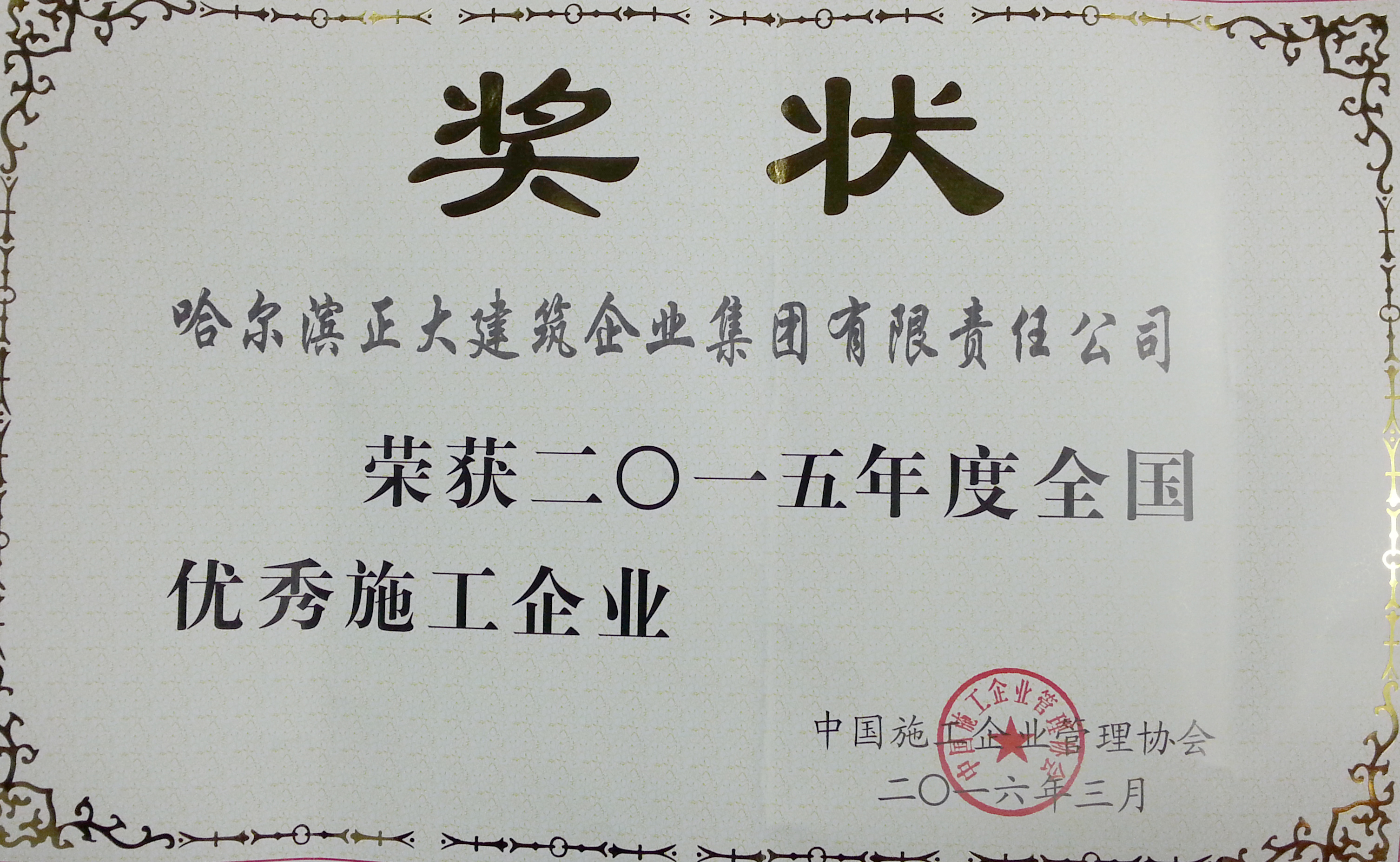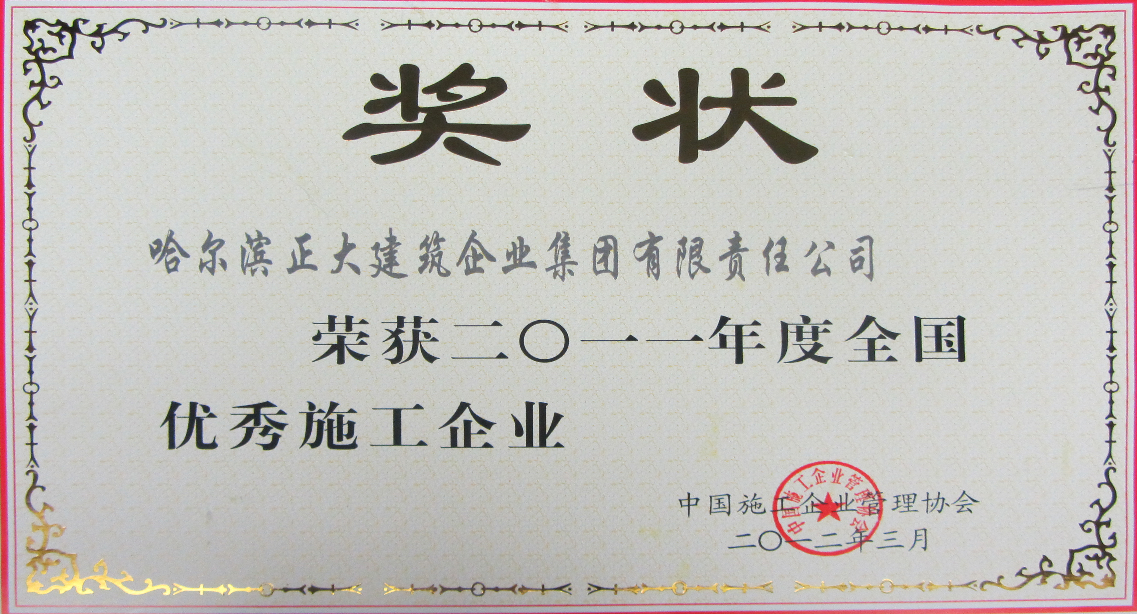公司成立至今,先后被評為全國優(yōu)秀施工企業(yè)、全國用戶滿意施工企業(yè),全國首批建筑業(yè)誠信施工企業(yè),全國“安康杯”競賽優(yōu)勝企業(yè),全國工程建設質量管理優(yōu)秀企業(yè)、中國建設系統企業(yè)信用信譽AAA級單位,并多次榮獲省、市“先進單位”、“優(yōu)秀單位”、“重合同守信用單位”、“黑龍江省優(yōu)秀施工企業(yè)”、“黑龍江省用戶滿意施工企業(yè)”等光榮稱號。并連續(xù)獲得哈爾濱市質量管理先進單位、黑龍江省質量管理先進企業(yè)、黑龍江省質量管理獎、黑龍江省“安康杯”優(yōu)勝企業(yè)等榮譽。并在建筑施工現場環(huán)保管理上創(chuàng)造了一項“中國企業(yè)新記錄”。